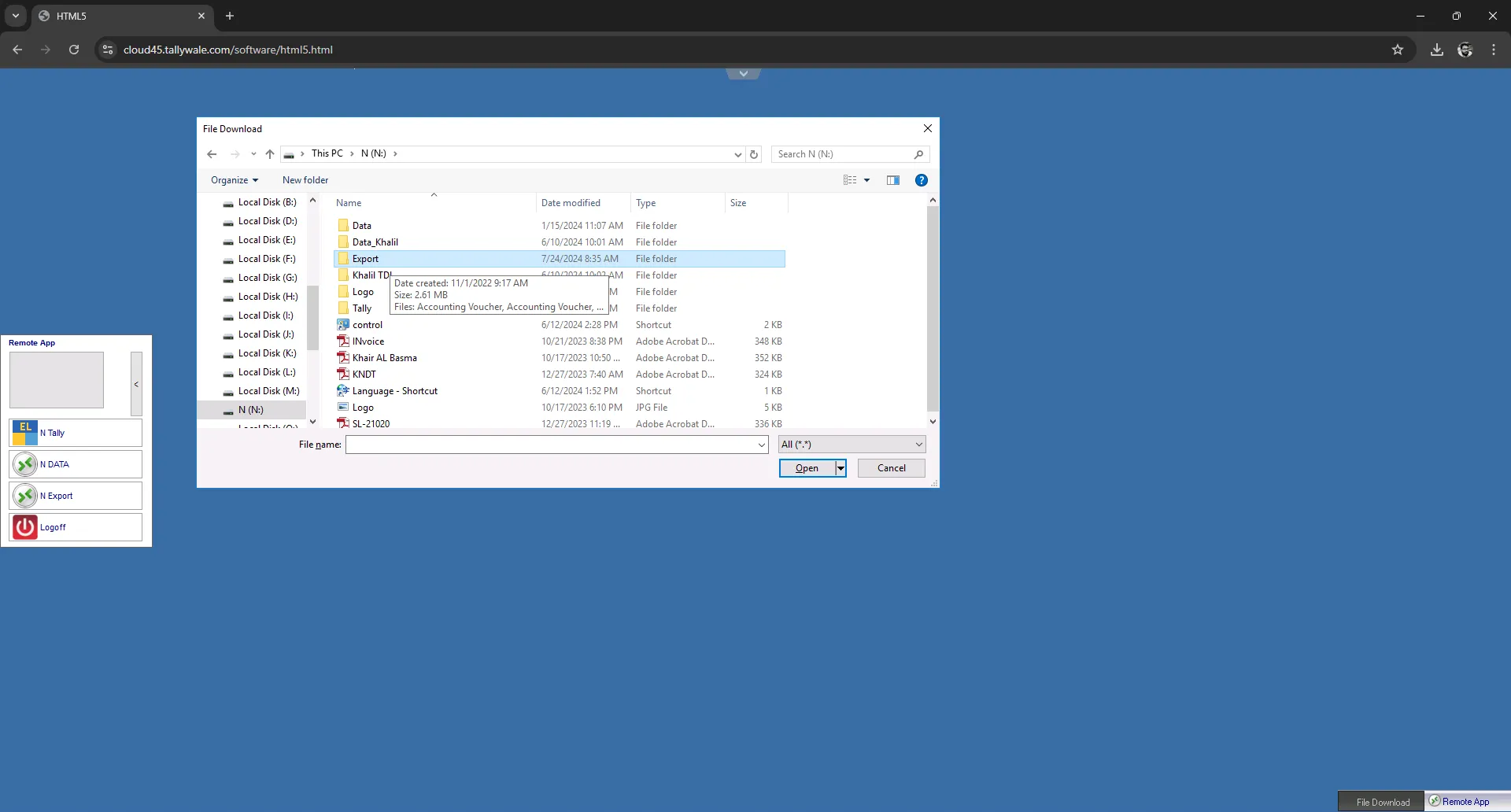 - Once the File is Saved to Export Folder, follow these steps to download the file